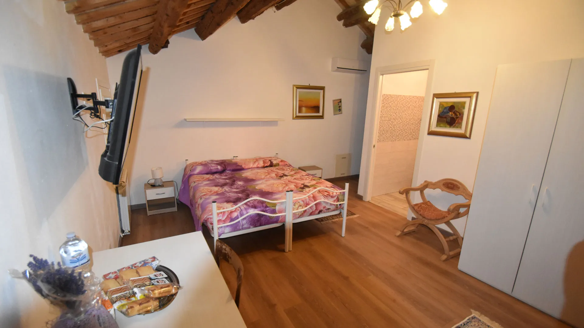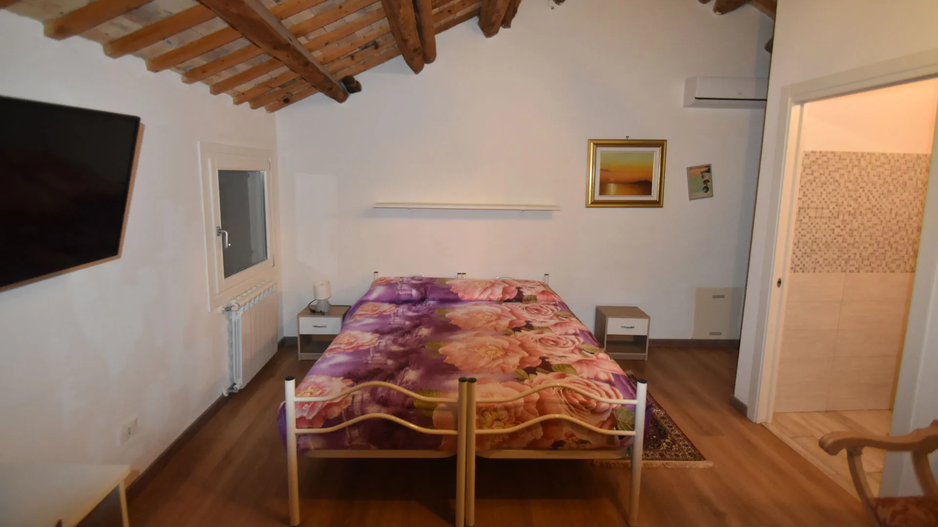 La camera è dotata di bagno privato interno, garantendo privacy e comodità durante tutto il soggiorno. Gli ospiti hanno accesso a una cucina in comune, completamente attrezzata per preparare colazioni e pasti in autonomia.