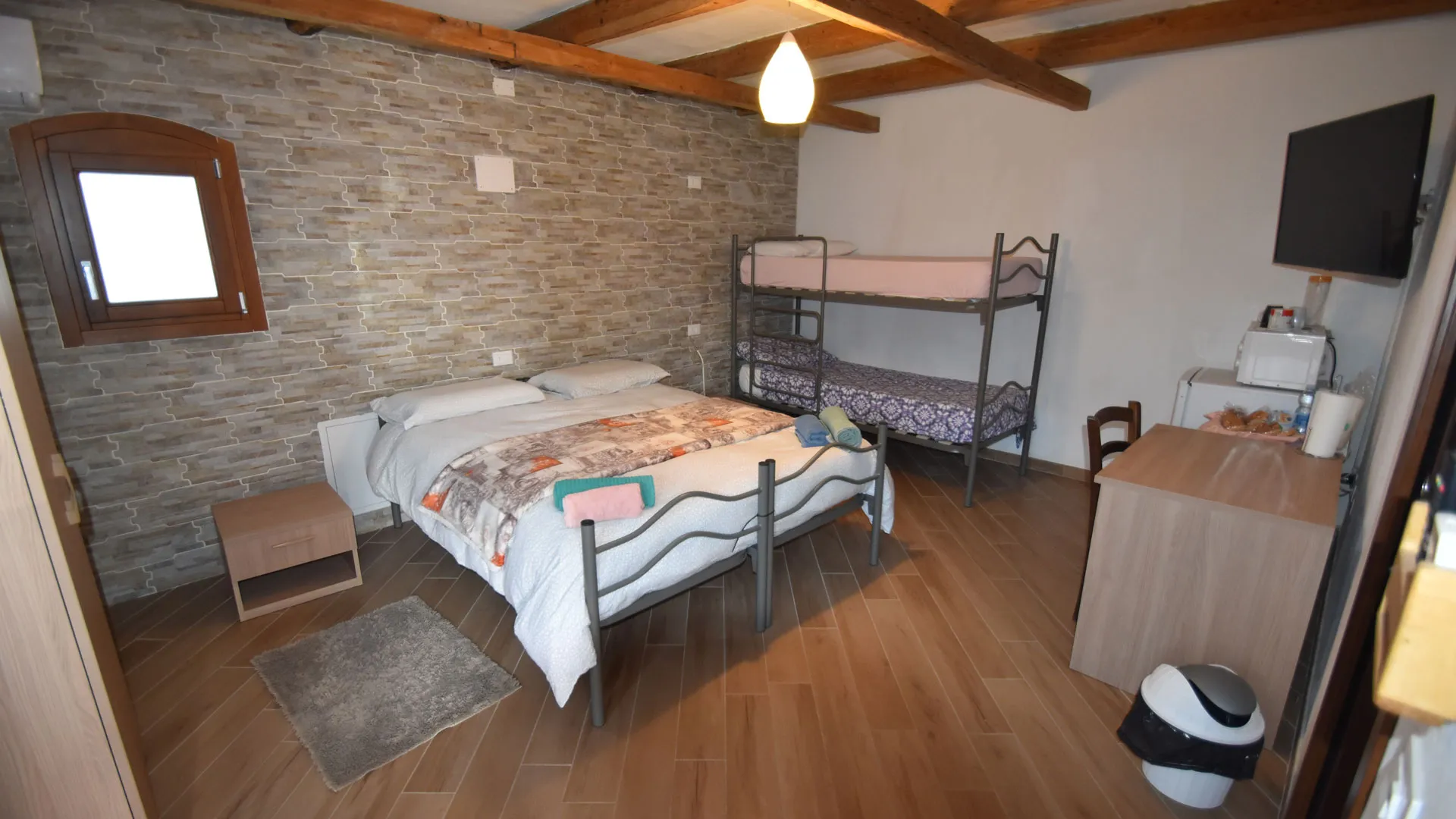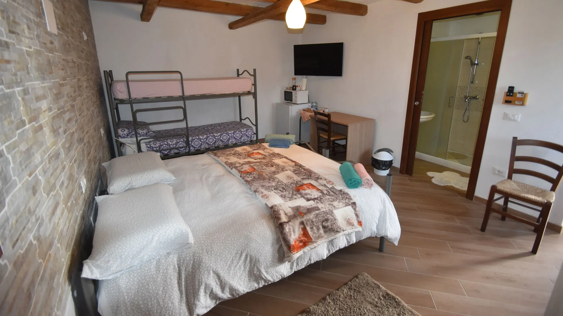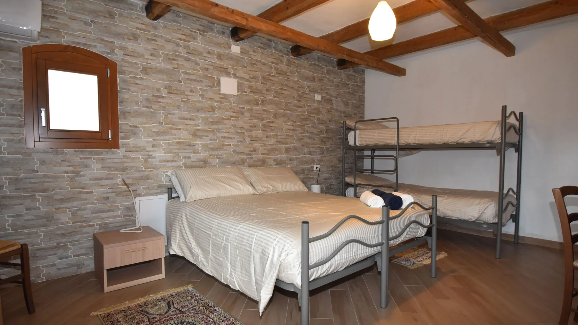Arredata in stile rustico, la camera unisce tradizione e funzionalità. Dispone di due letti singoli unibili in un letto matrimoniale e di un letto a castello, offrendo una capienza massima di quattro persone.